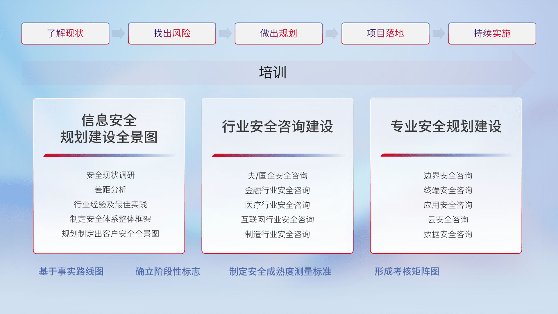 通过专业的法律咨询解读、、合规架构体现、、、差异化解决方案、、、、测试实施支持等服务,,,,为客户量身打造等保合规体系。。。