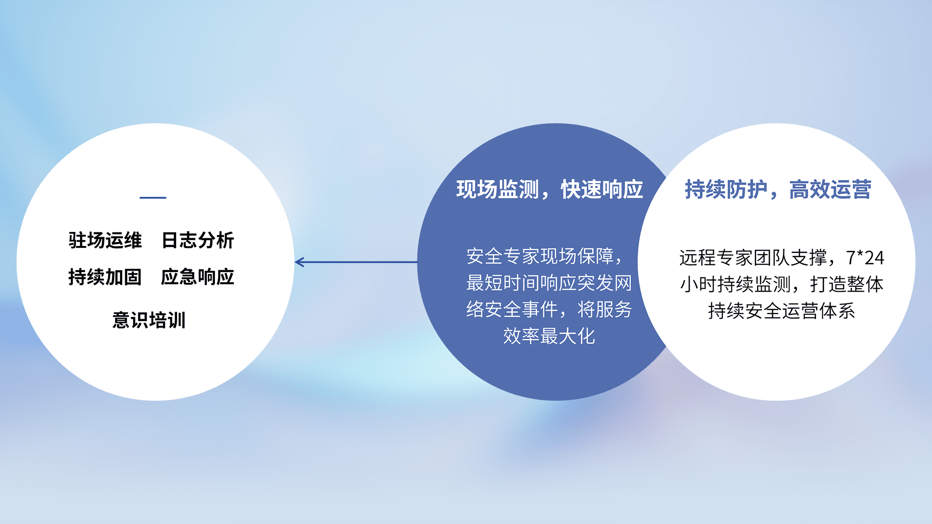 7X24小时持续监测安全事件,保持安全策略有效性,降低资产脆弱性风险,,,,精准拦截黑客攻击,,,,减少被黑客利用的机会,,第一时间遏制,,,,降低损失。。。