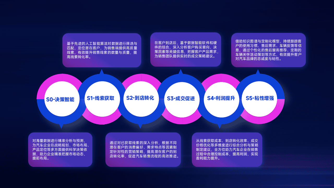 通过拓宽潜在客户来源、、、优化线索分配并提高到店转化率,,,,以增强销售效率。。。。同时,,利用线索数据不断优化分析模型,,,,有效提升转化率,,扩大营销影响力。。。。